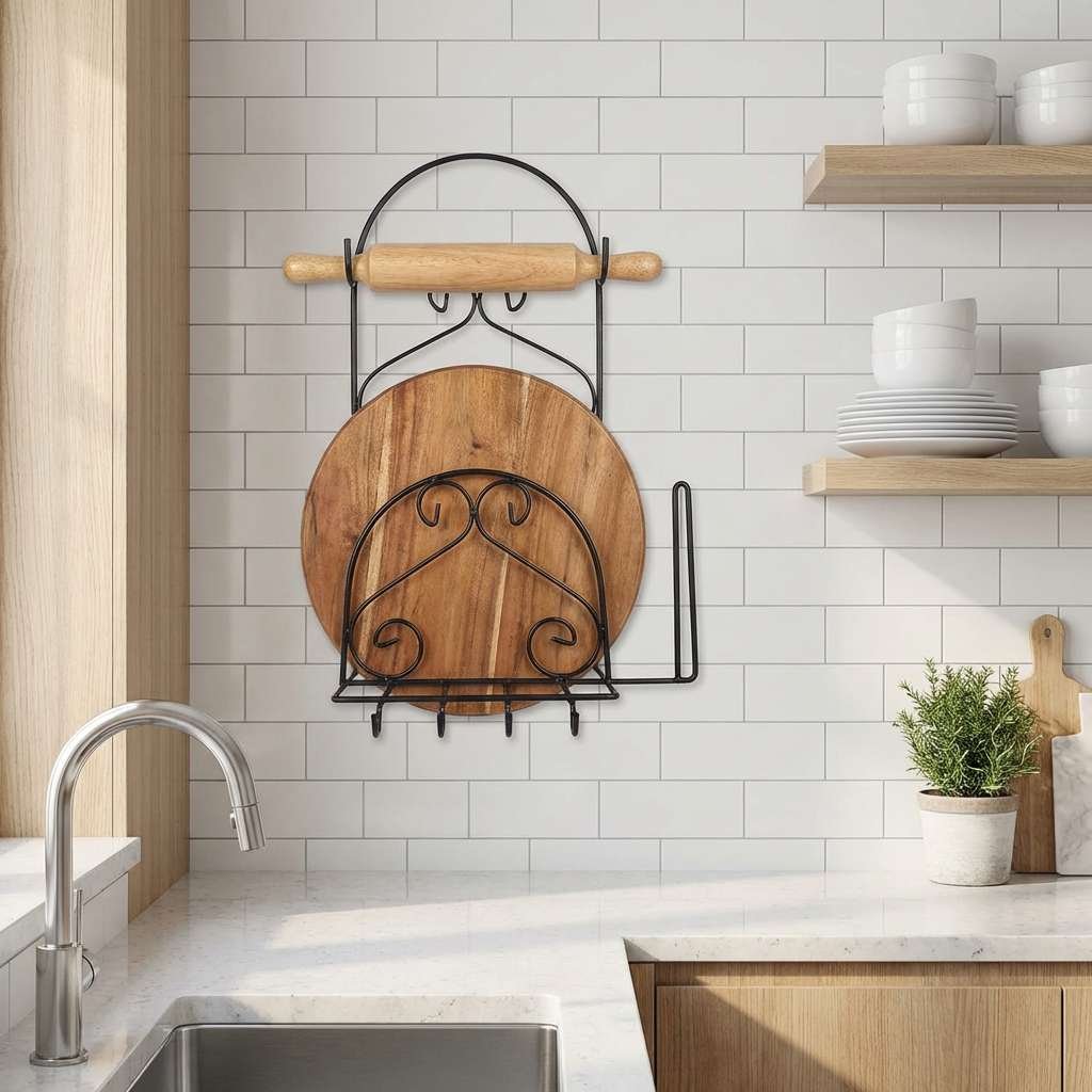 এতে আপনি রাখতে পারবেন বেলুন-পীড়ি, প্লেট, চামচ, প্যান বা অন্যান্য রান্নার সামগ্রী। এর নিচের হুকগুলোতে রান্নার যন্ত্রপাতি ঝুলিয়ে রাখা যায়, ফলে রান্নাঘর থাকে গোছানো ও সহজে ব্যবহারযোগ্য। ১০ কেজি ধারণক্ষমতা থাকায় এটি দৈনন্দিন ব্যবহারের জন্য যথেষ্ট মজবুত।