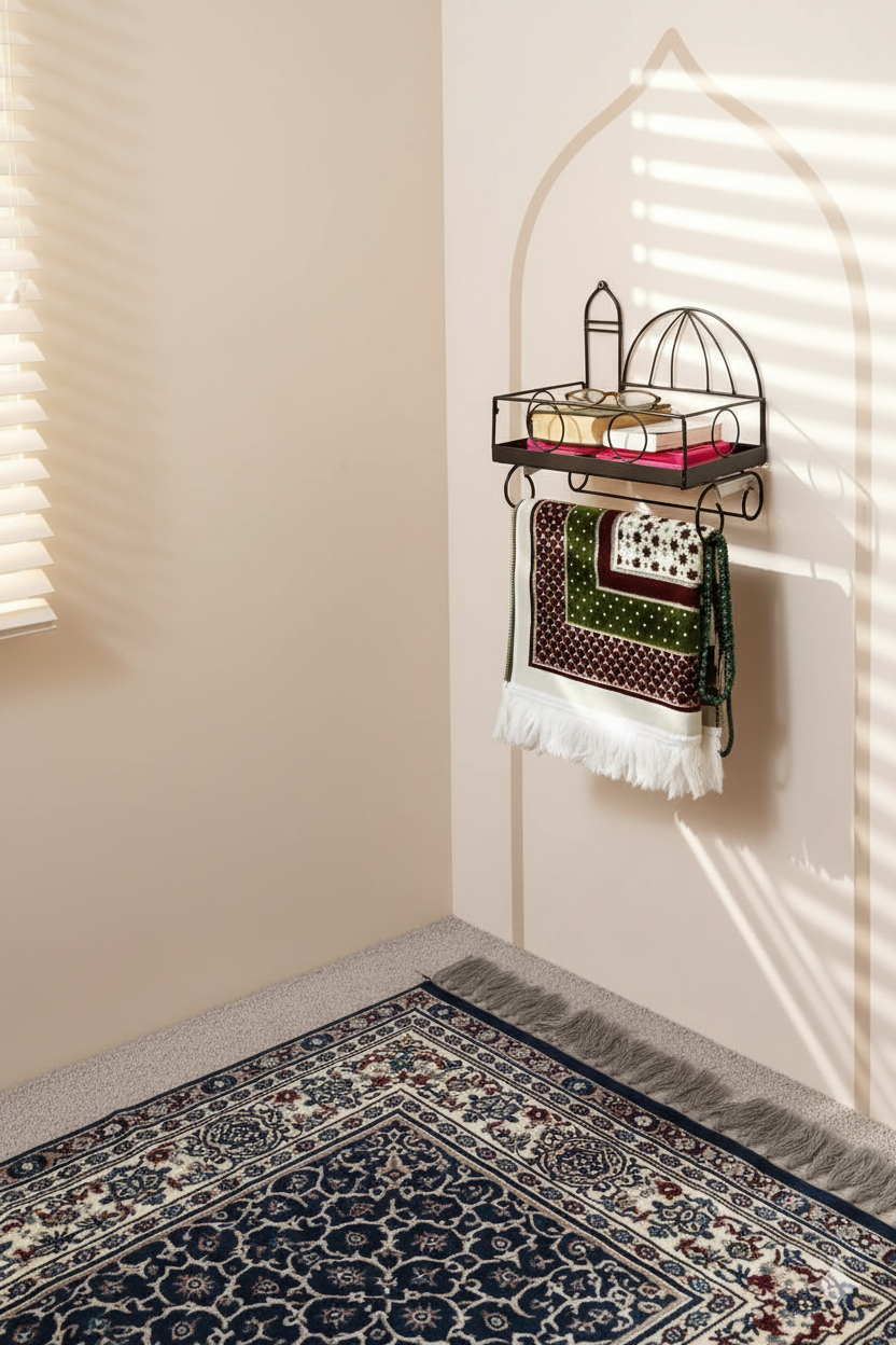 আপনার নামাজঘরকে আরও সুশৃঙ্খল ও মর্যাদাপূর্ণ করতে নিয়ে এসেছে The Holy Quran Shelf – একটি আকর্ষণীয় ও টেকসই কুরআন রাখার শেলফ। মজবুত wrought iron দিয়ে তৈরি এই শেলফটি সহজেই দেয়ালে স্থাপনযোগ্য এবং মরিচা-প্রতিরোধী কালো রঙে আকর্ষণীয় লুক প্রদান করে। এতে পবিত্র কুরআন, তসবিহ ও জায়নামাজ সুন্দরভাবে সাজিয়ে রাখা যায়।